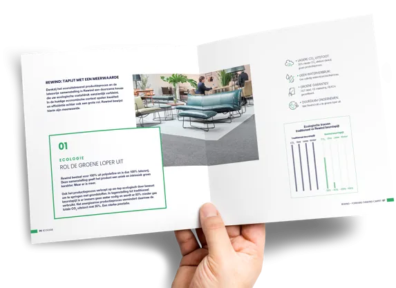 We adopted the concept visual and the green look for the design of the website, the brochure, the swatch book and all Rewind communication tools.