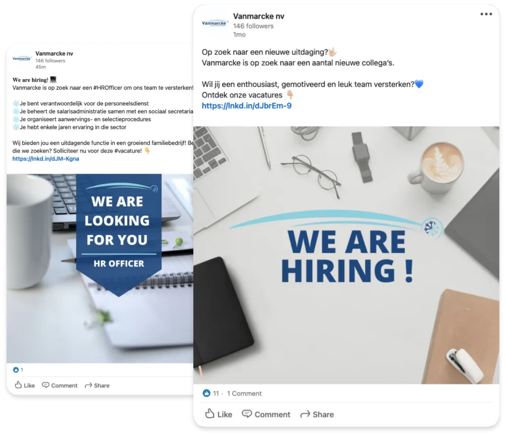 Vanmarcke, a logistics company working out of Gullegem, were looking for a way to fill their vacancies faster. We quickly hit on the right approach and built a simple but effective website, with the traffic flow running through LinkedIn.